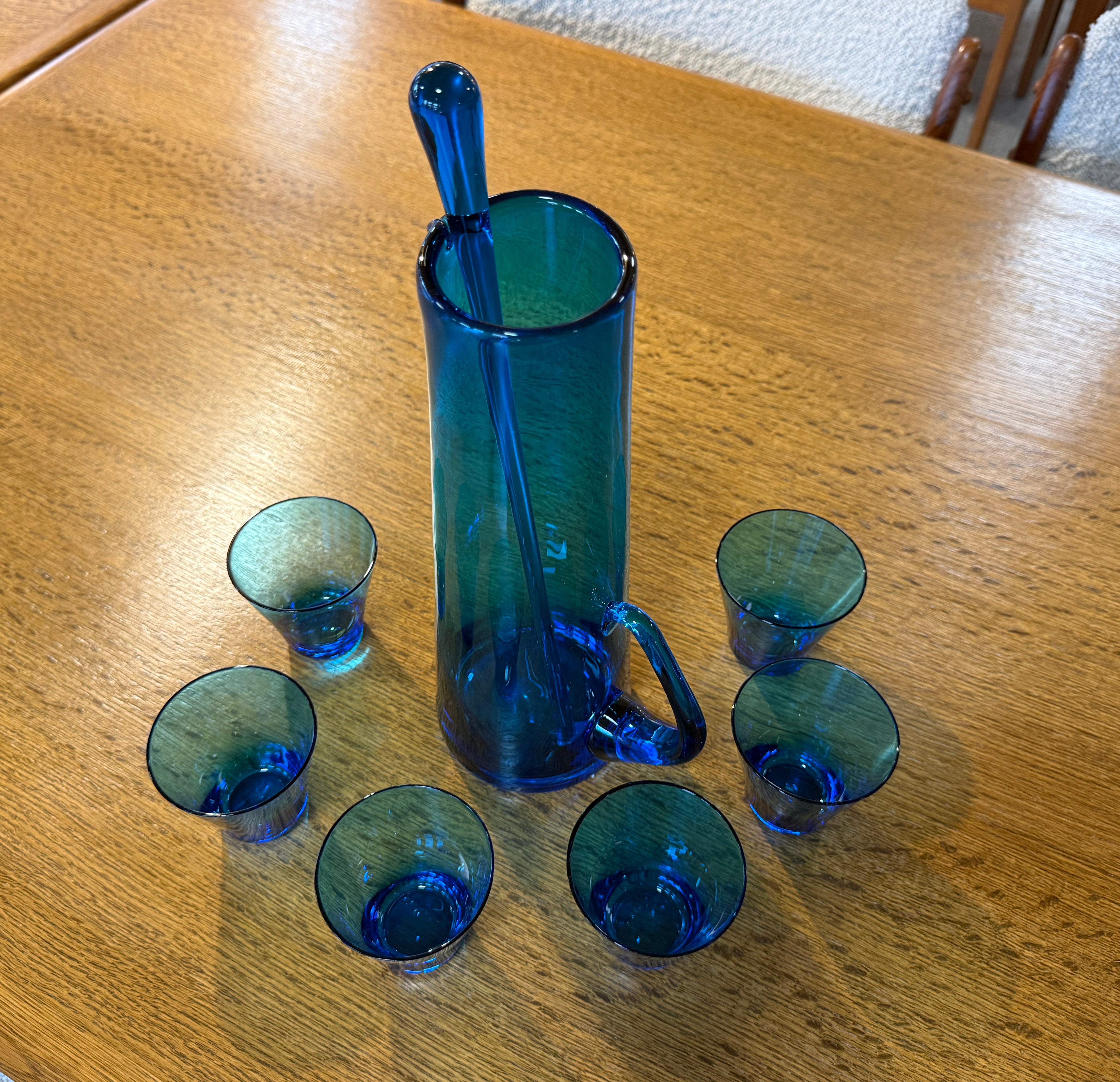 This smoked glass Cocktail Set features an elegant pitcher with rare stirring stick, alongside six matching glasses.