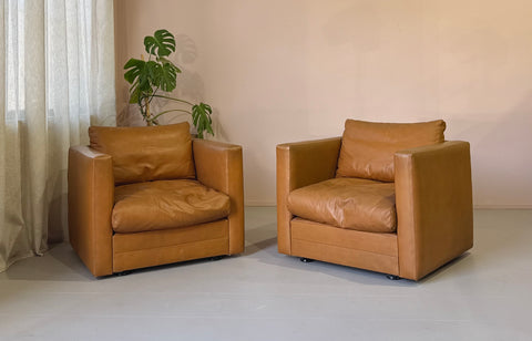 Wonderful lounge chair in patinated leather and with a European oak frame.