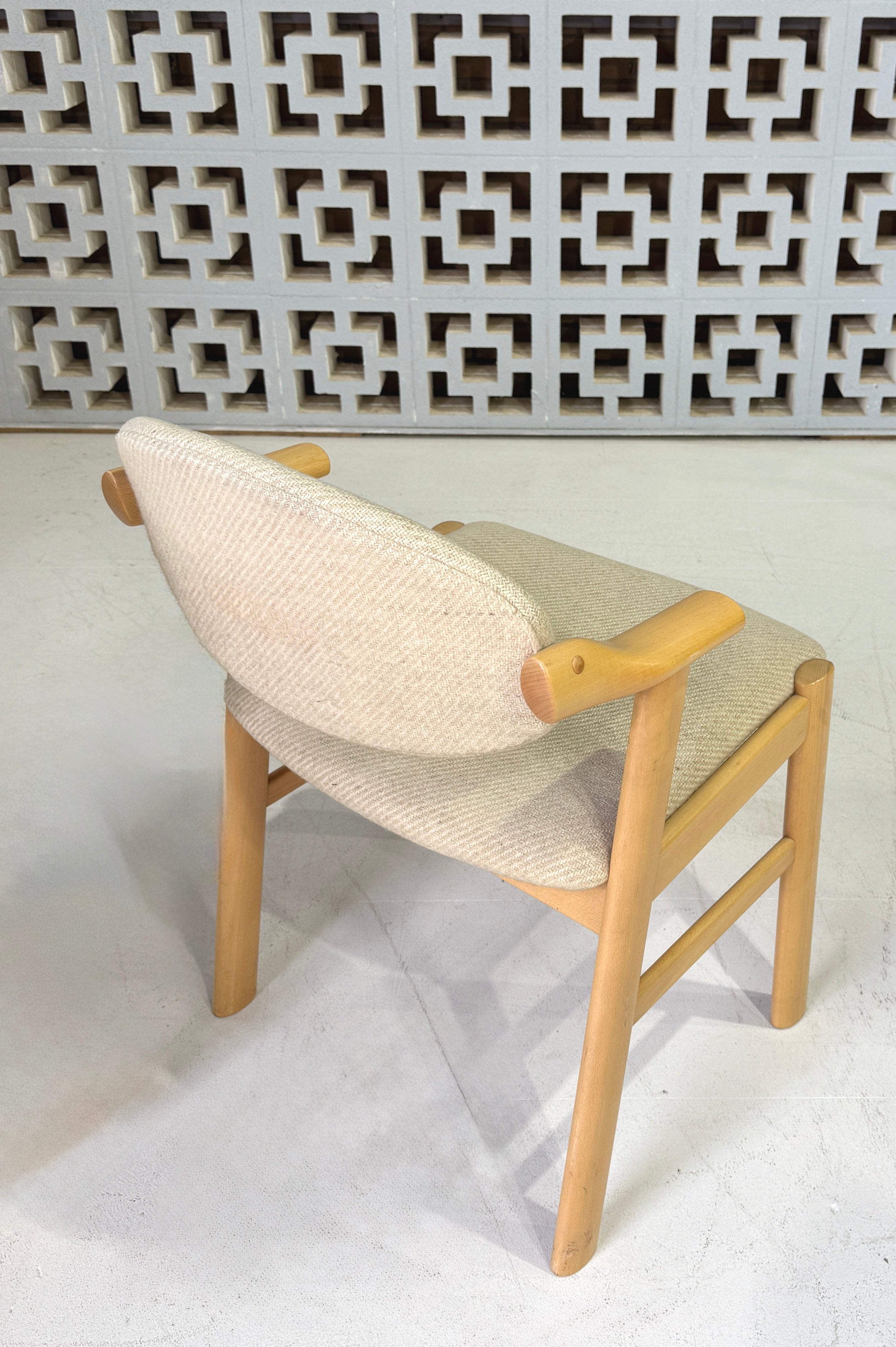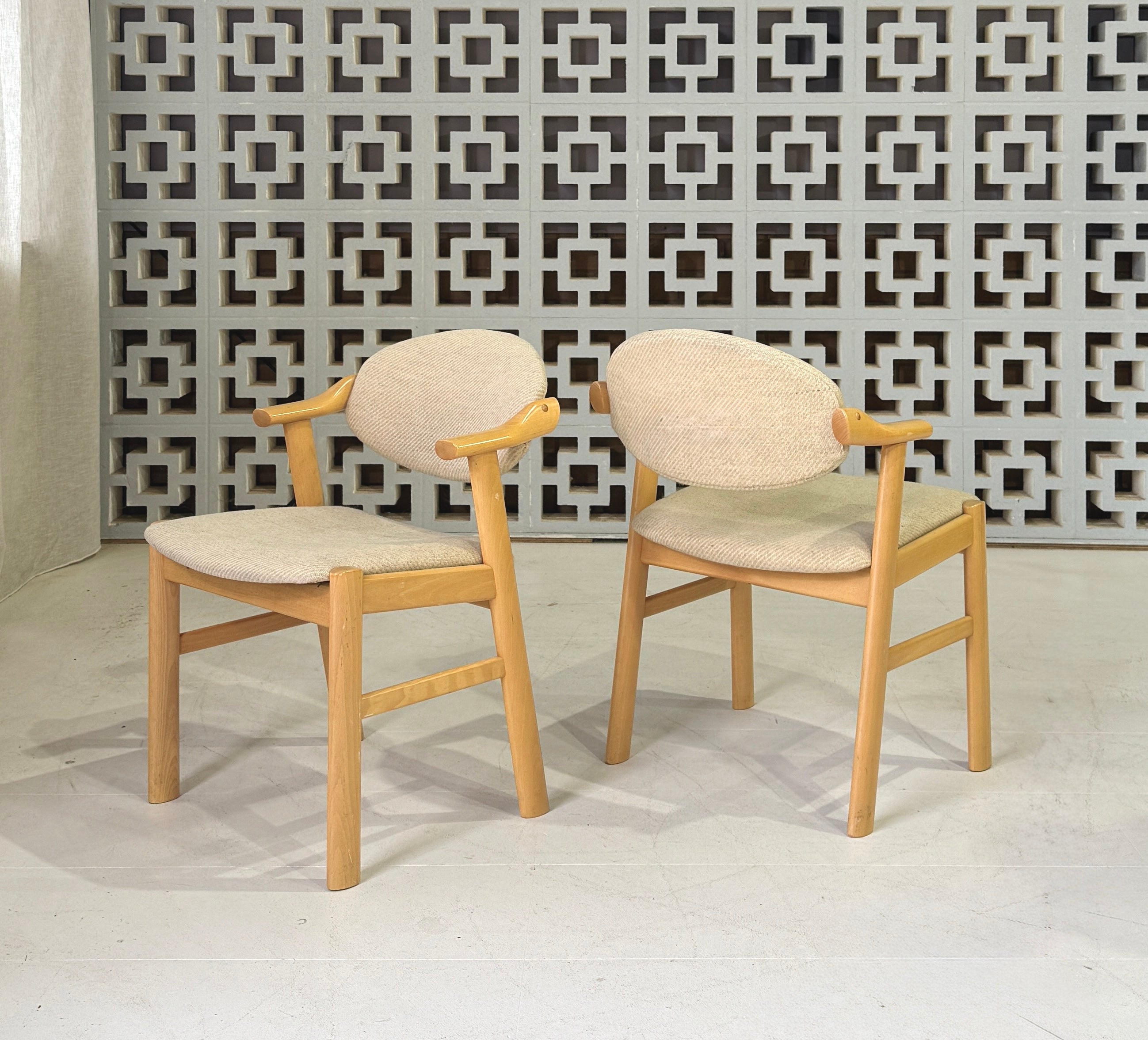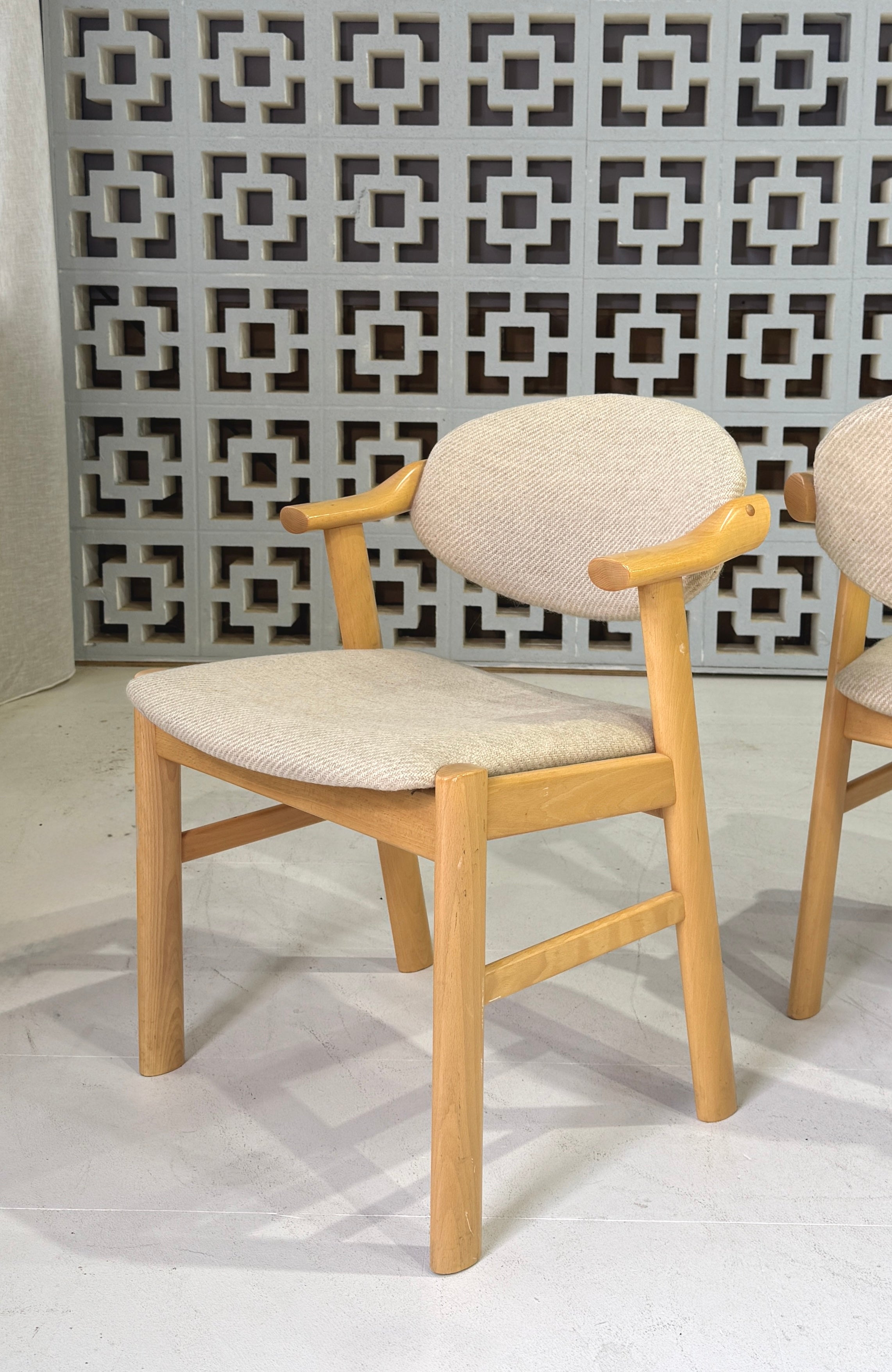 Wonderful set of chairs from Danish maker Schou Andersen with a robust, chunky frame in European beechwood and with original wool upholstery.
