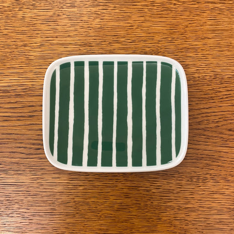The horizontal Lokki print was inspired by the wave-like play of shadows that the sunlight creates on a curtain. The vertical Pergola pattern, featured on one of the mugs, also has an undulating shape.
