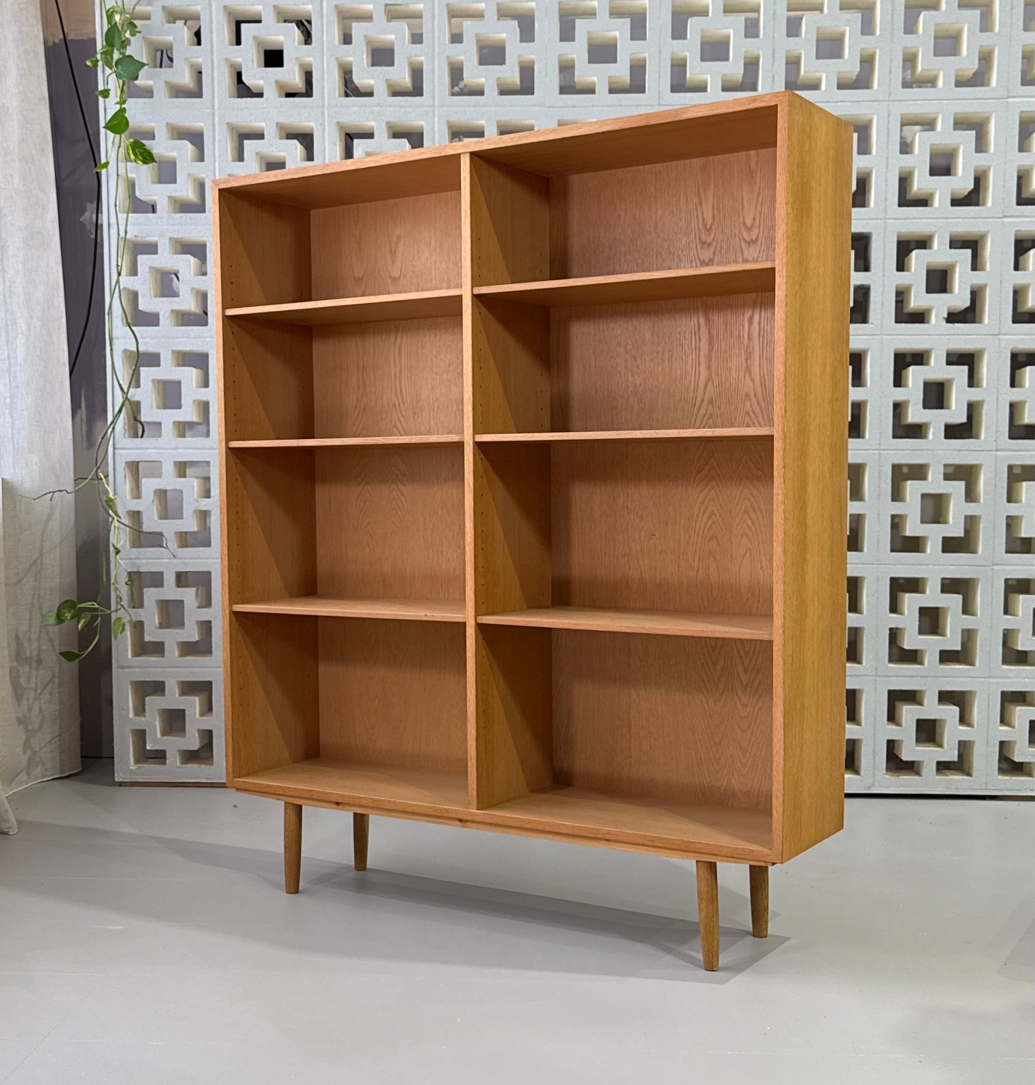 Well-sized bookcase in European oak and with adjustable shelves.