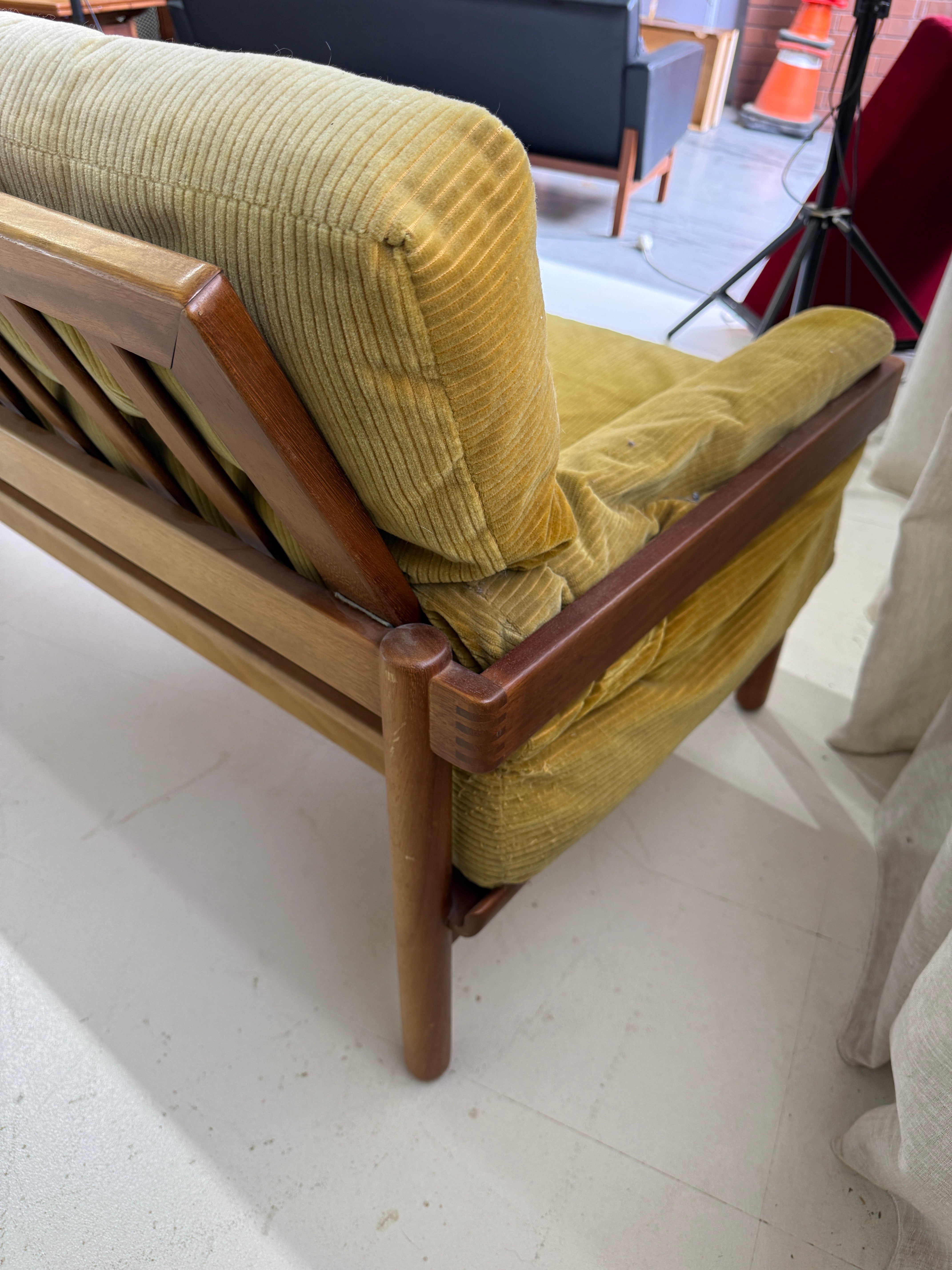 This piece requires new upholstery, now’s your chance to choose your own fabric. Contact us for options and pricing.