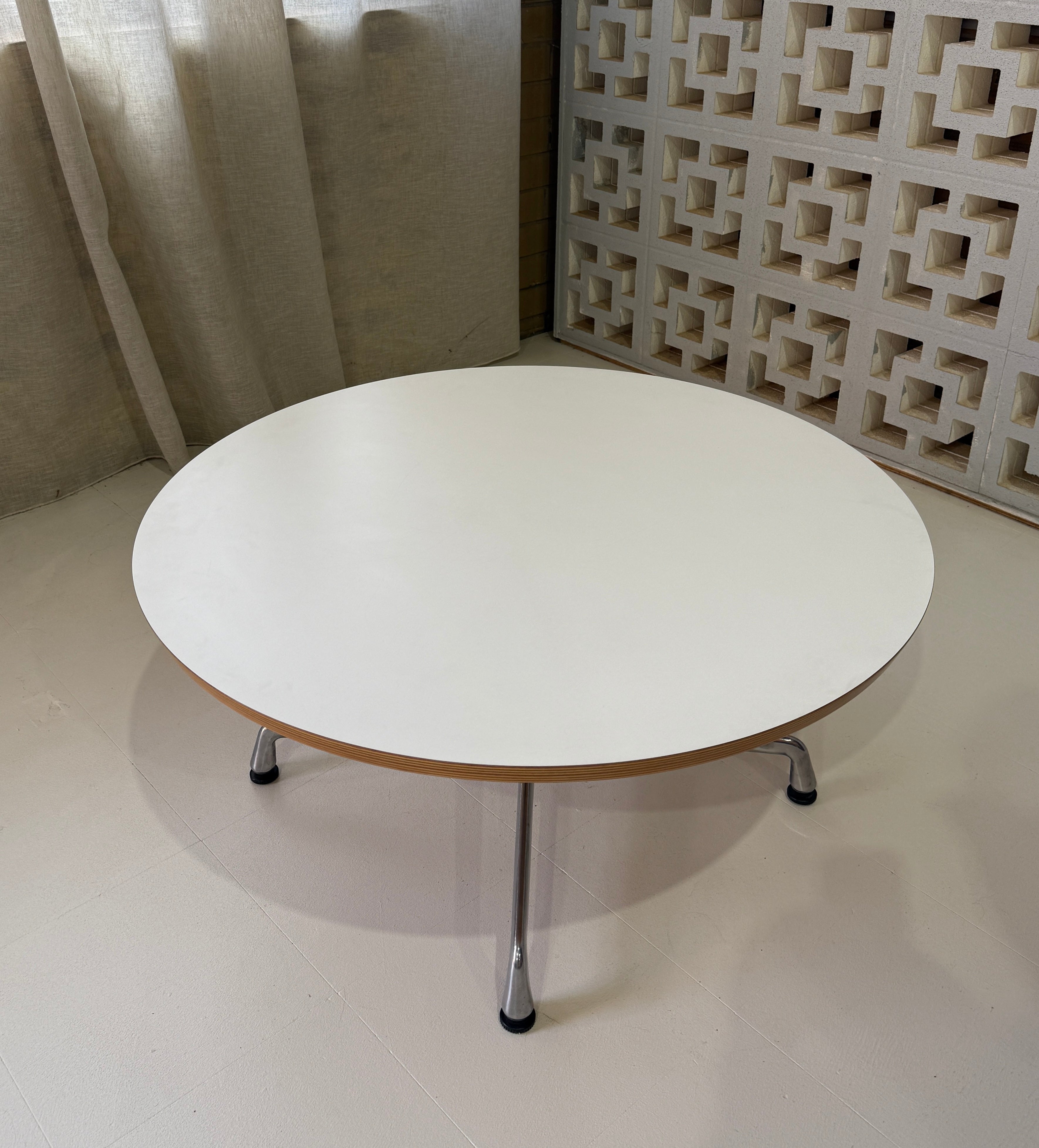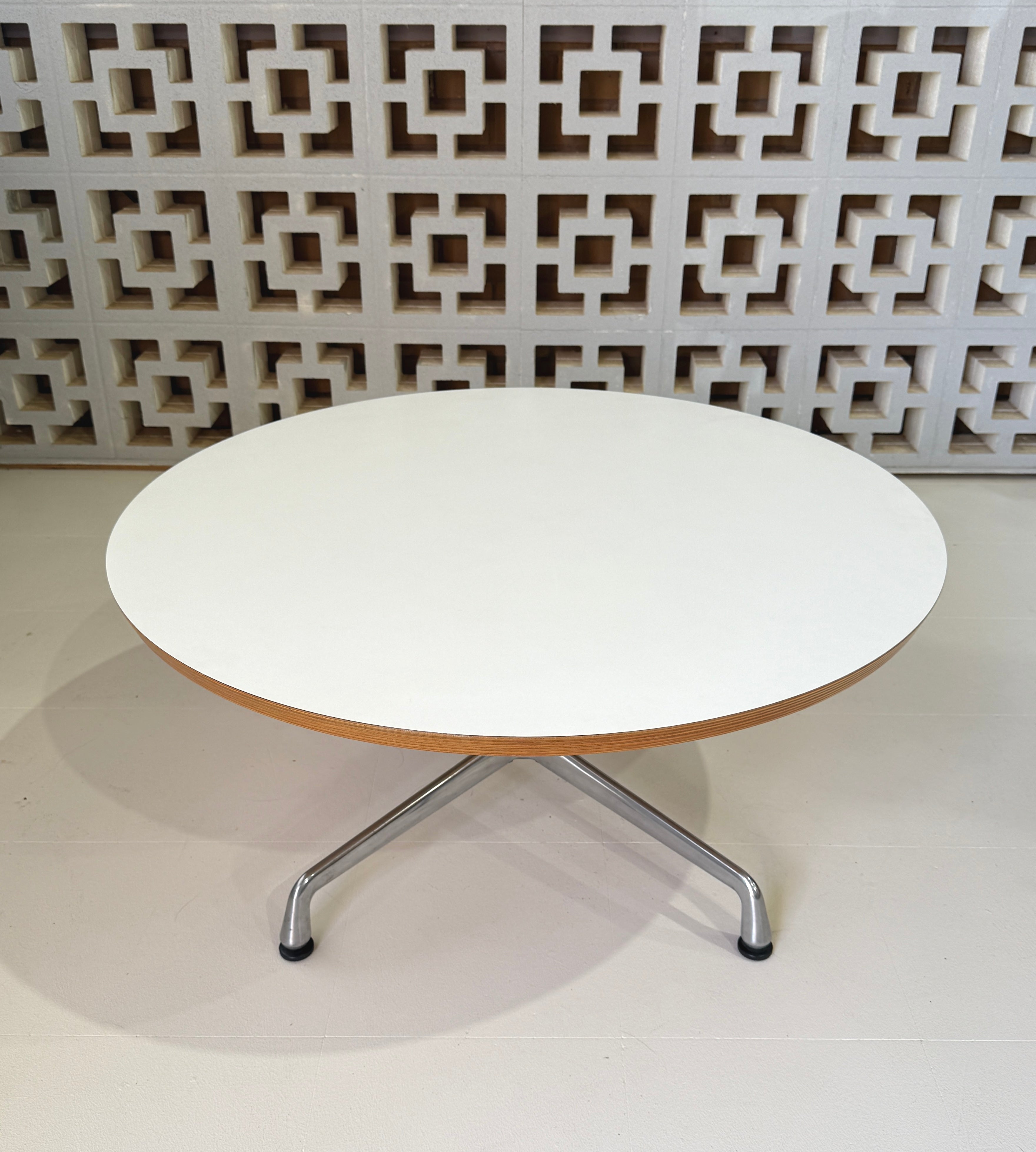 Well sized coffee table in a traditional white-topped laminated ply on a aluminium leg base.