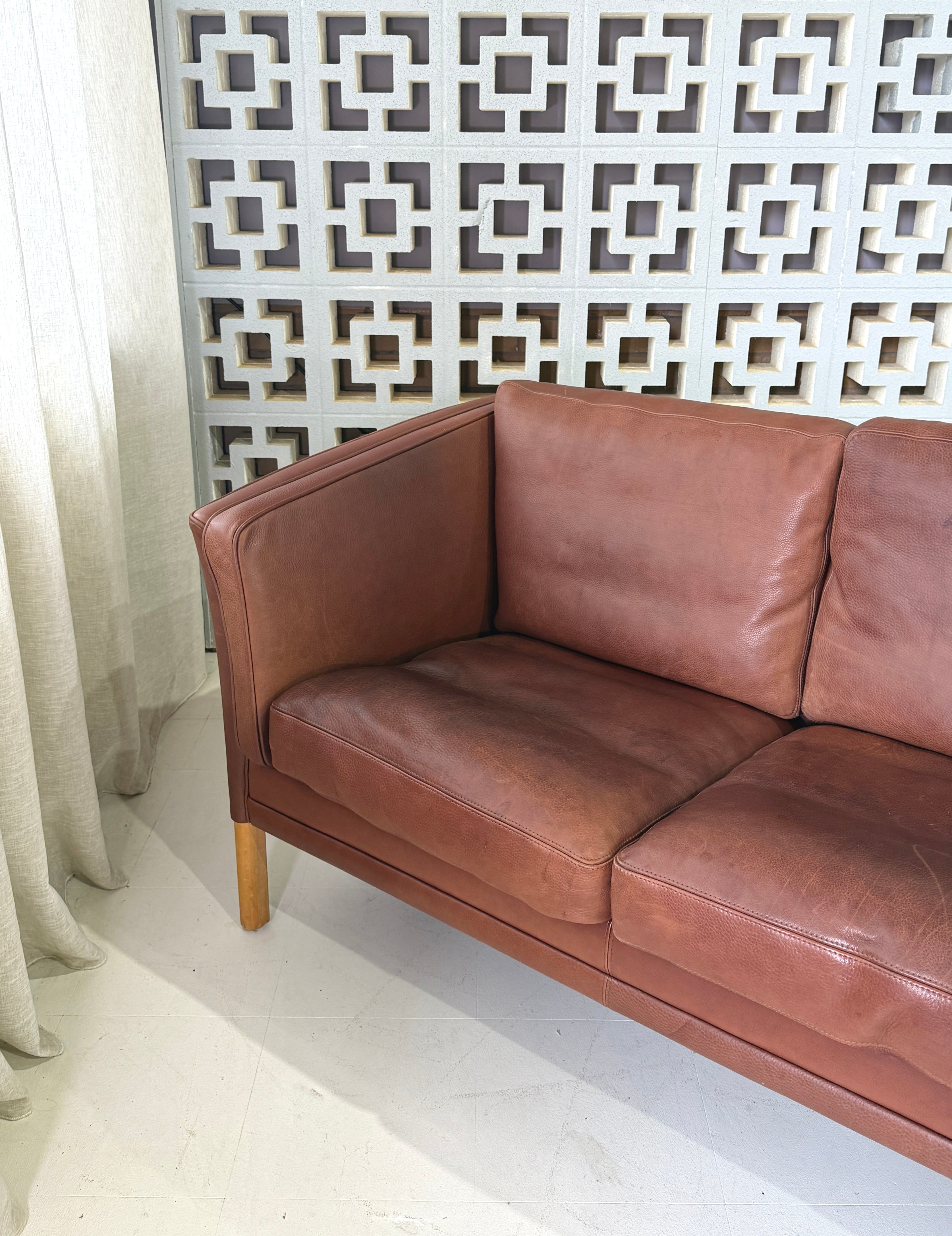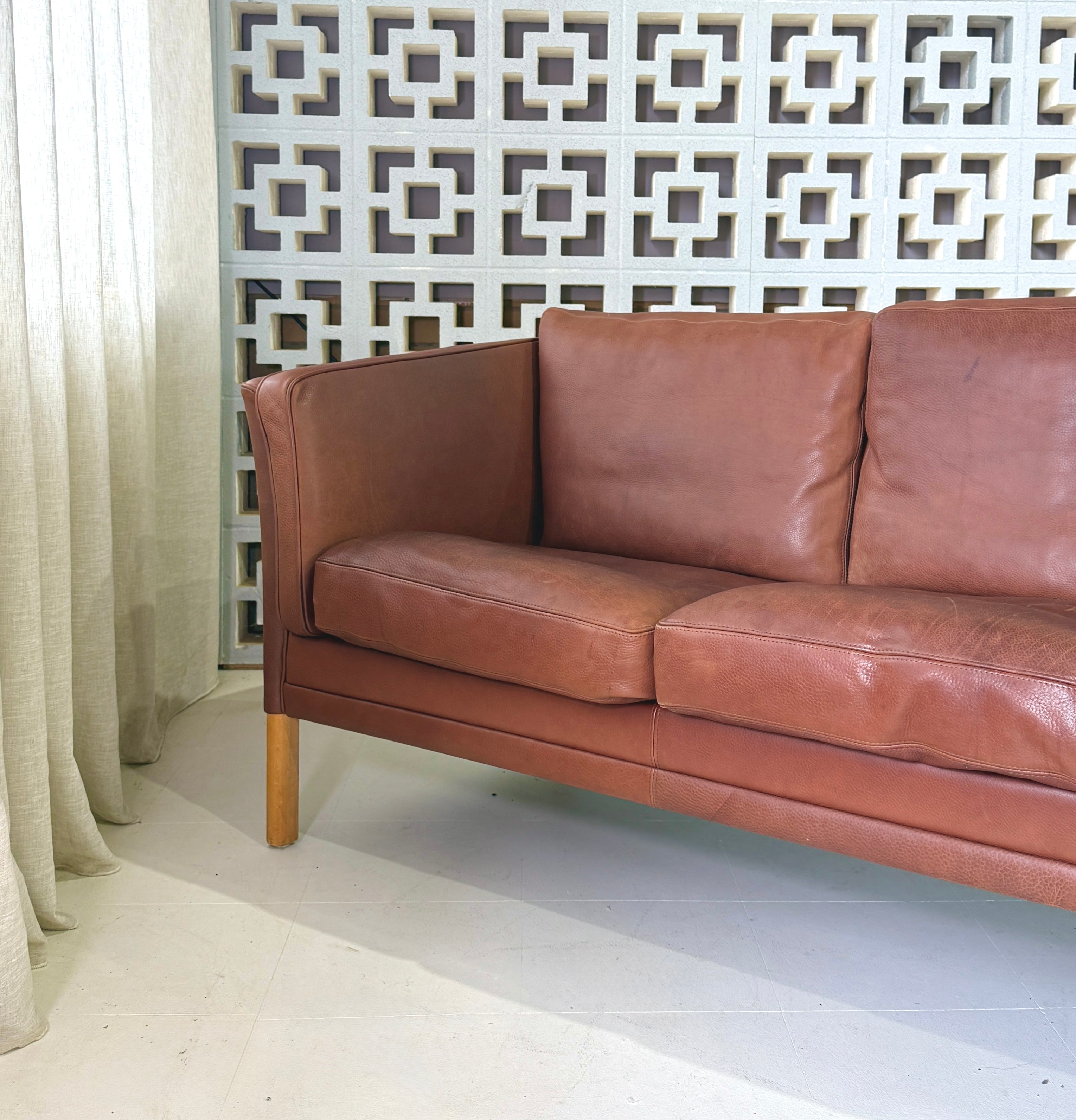 Mogens Hansen three seater sofa in soft terracotta leather.