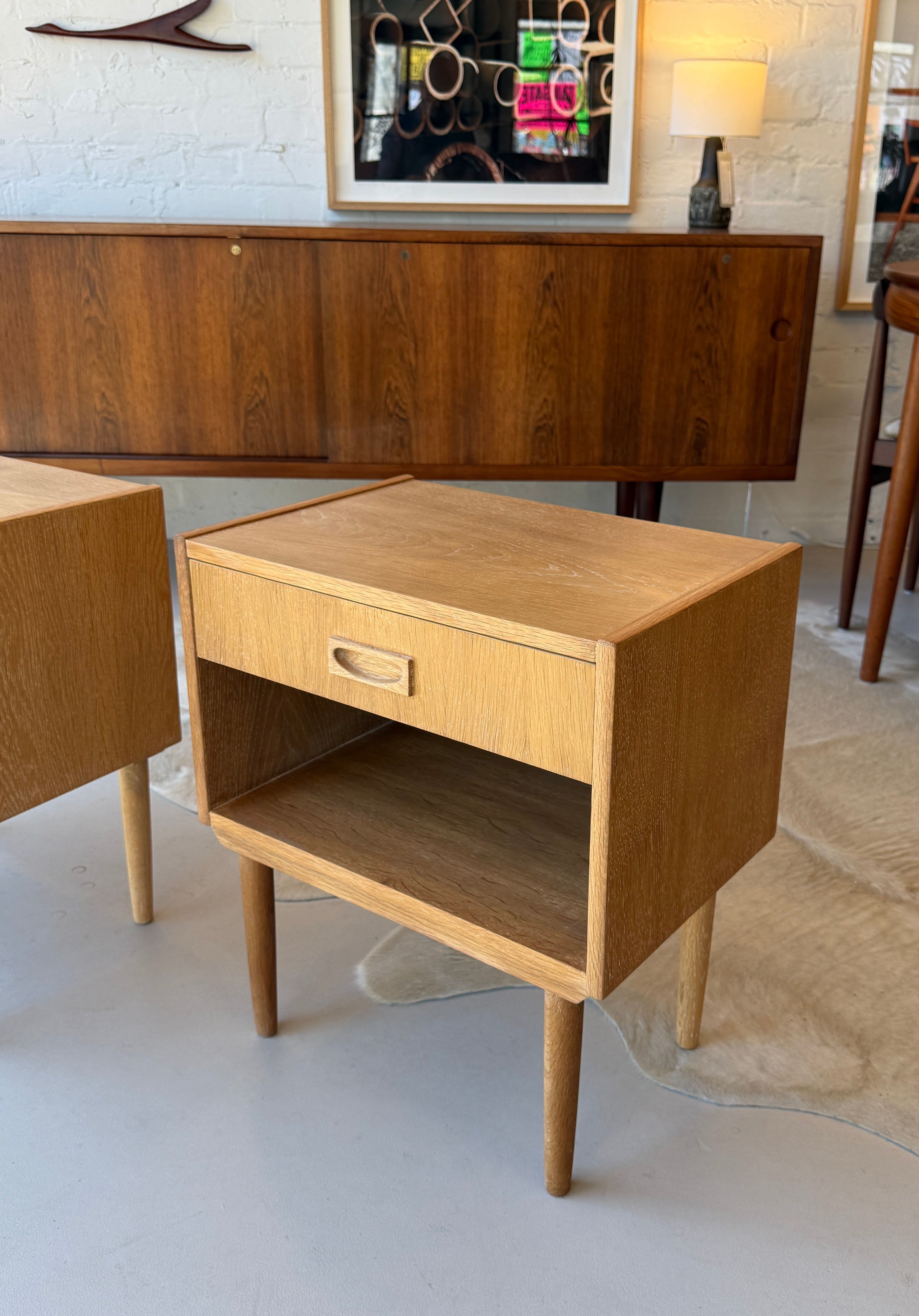 The well-sized matching pair feature a single pull-out drawer, and a lower hutch.