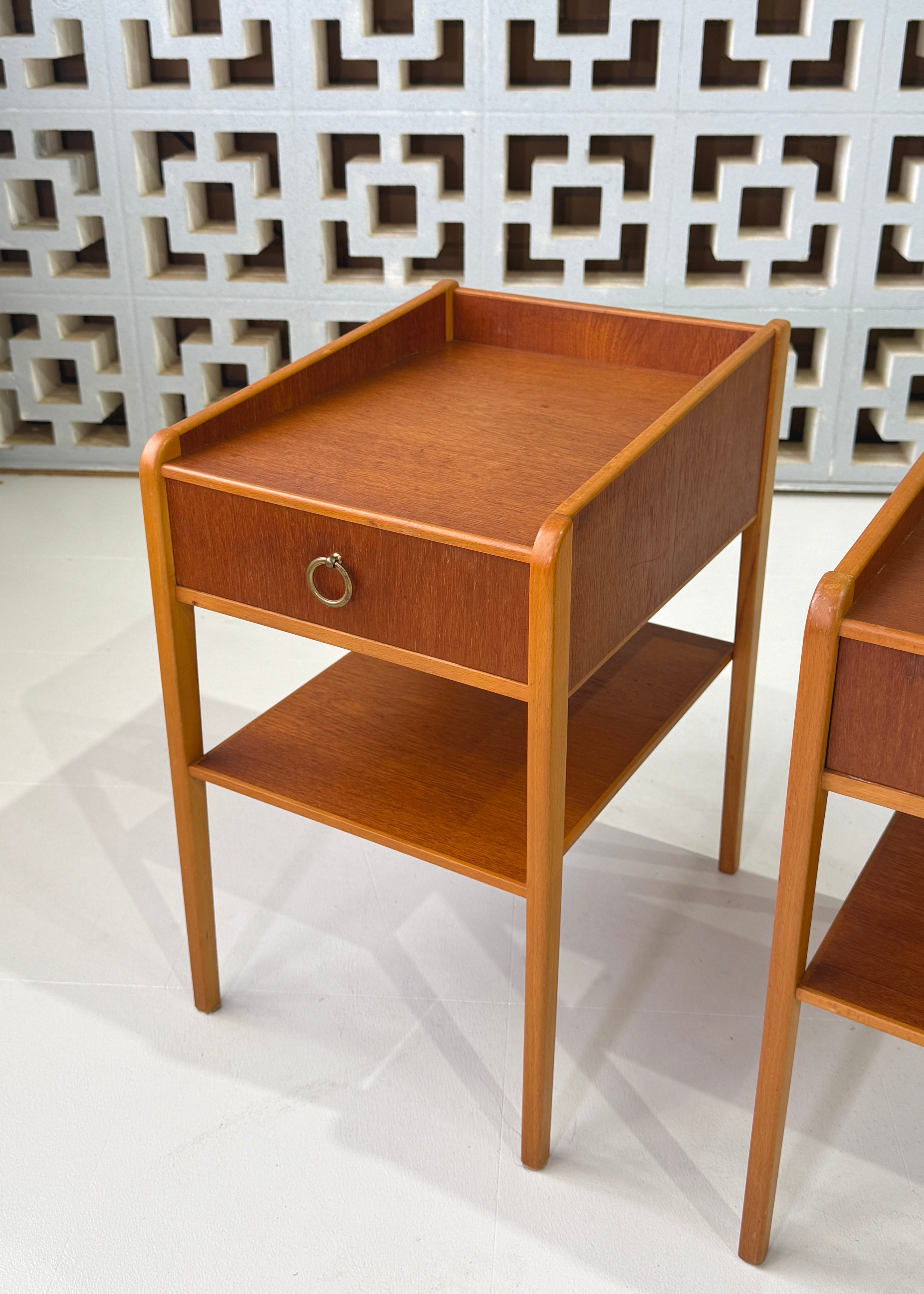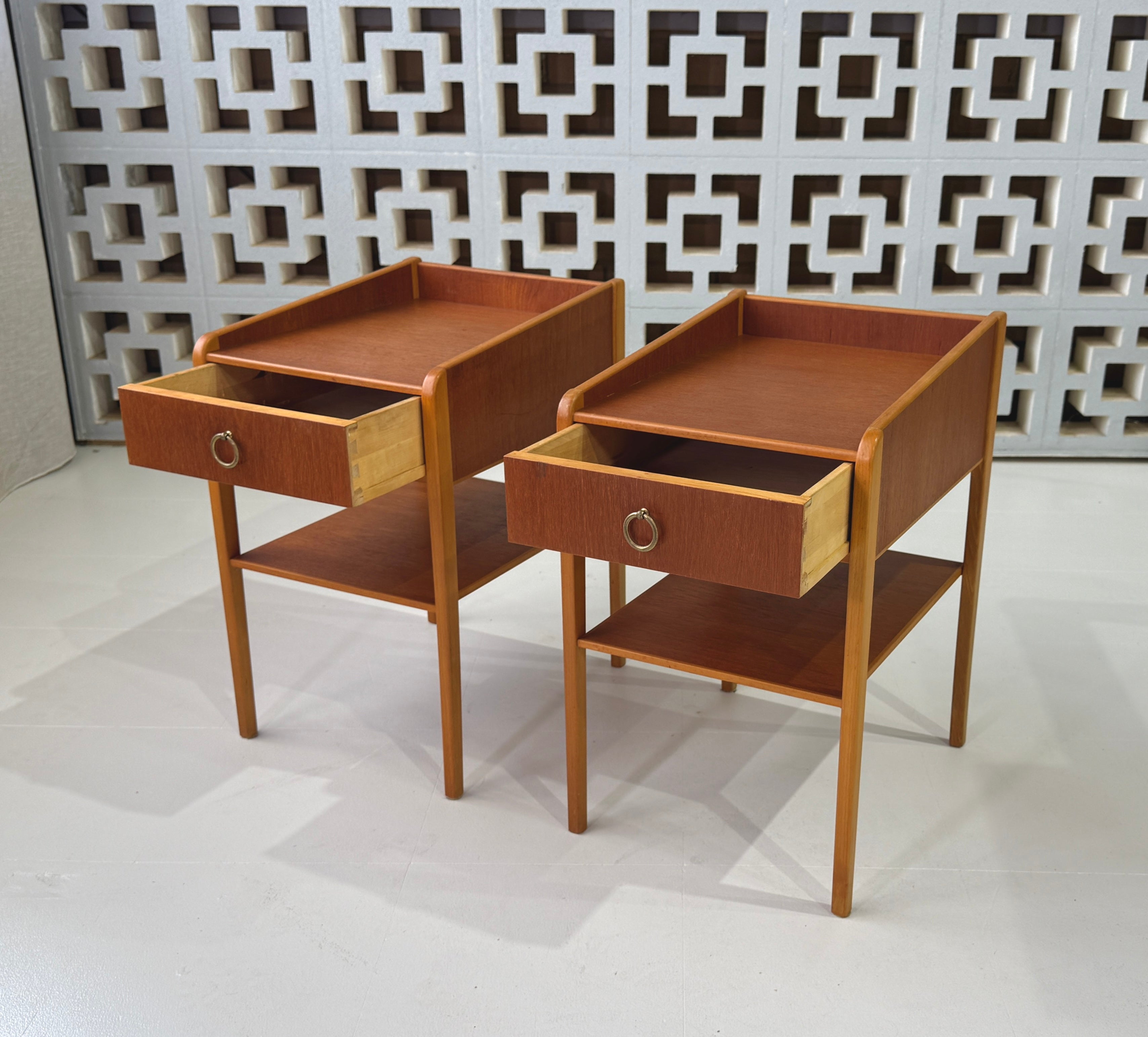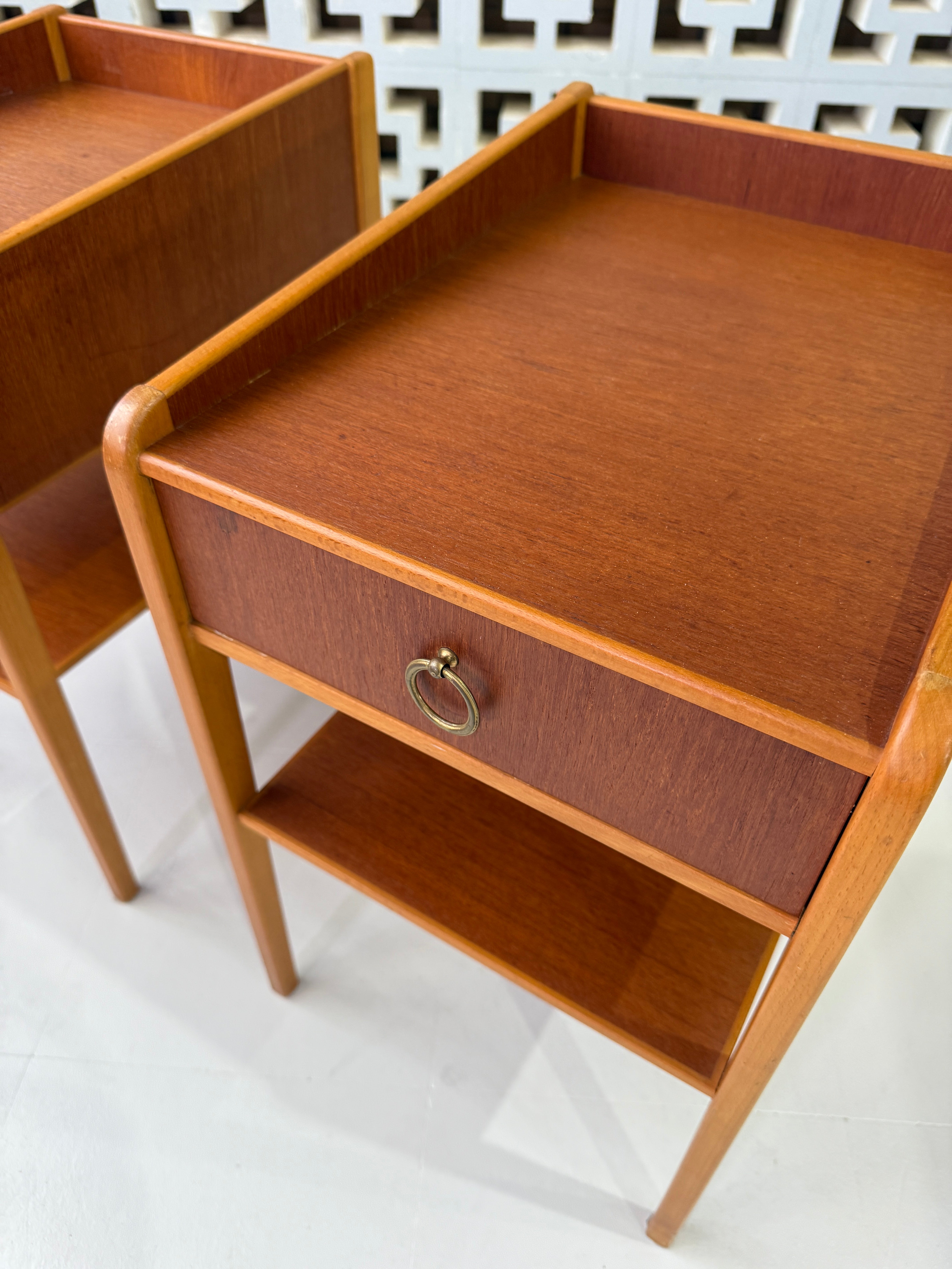 Pair of Swedish Bedside Tables in Teak & Beech