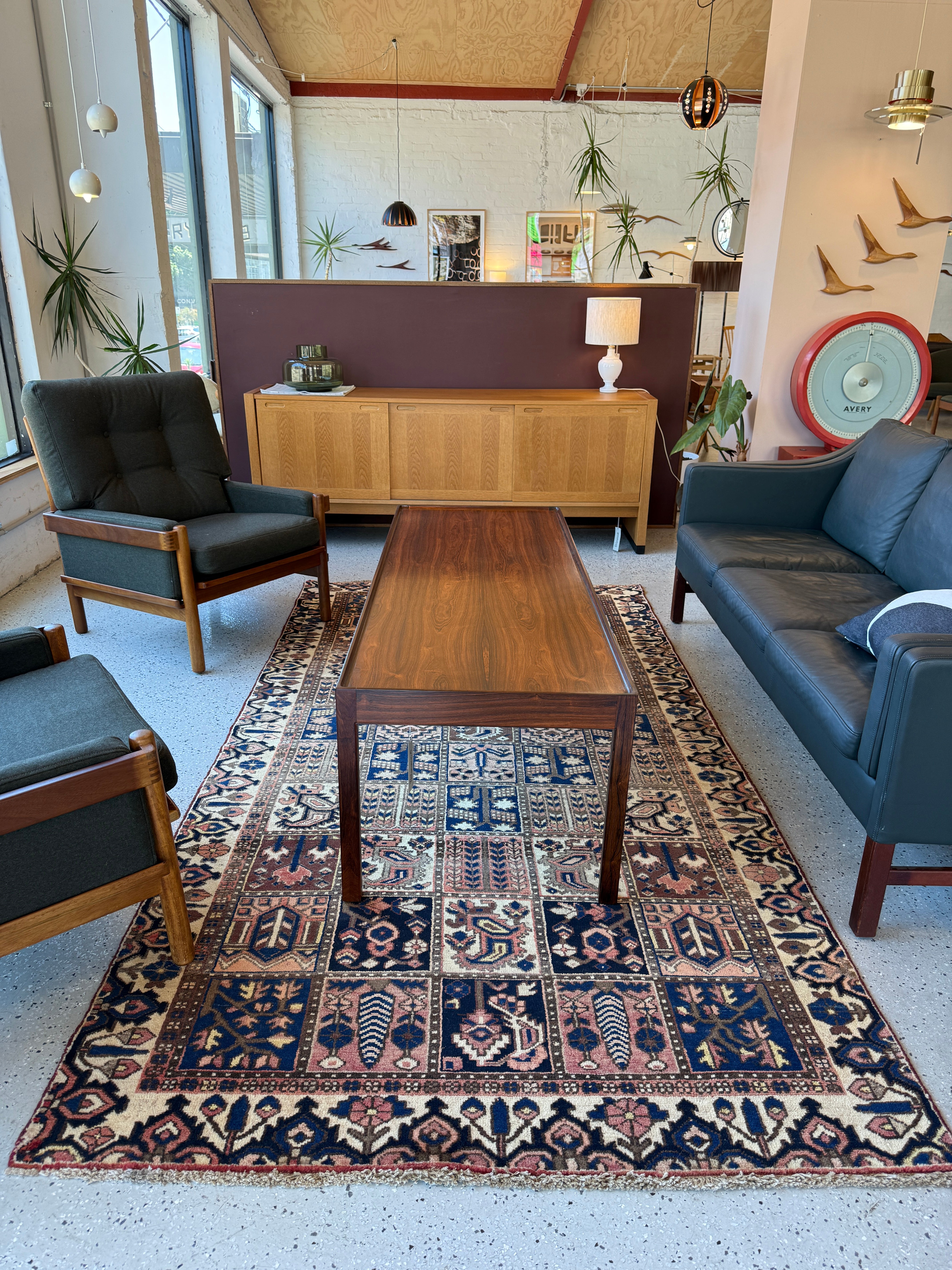 Middle Eastern rugs have long been a perfect complement to the clean lines of Danish and other mid-century furniture, softening the room and adding a layer of warmth.