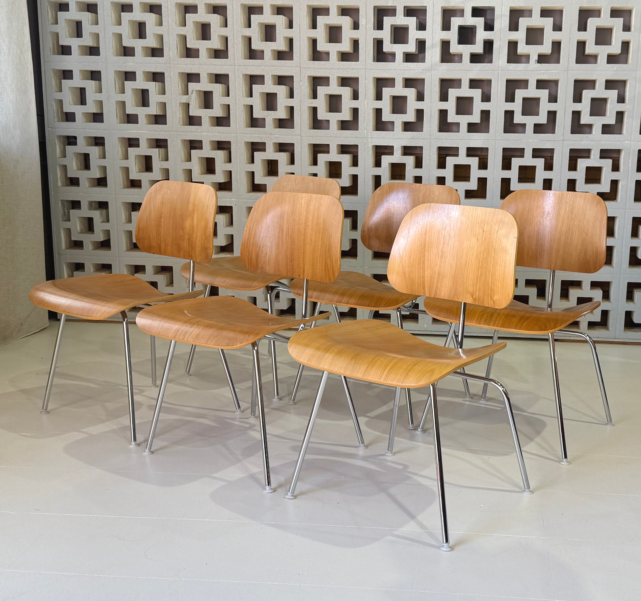In no need of introduction, these particular chairs are in bright moulded ply on an excellent chrome frame.