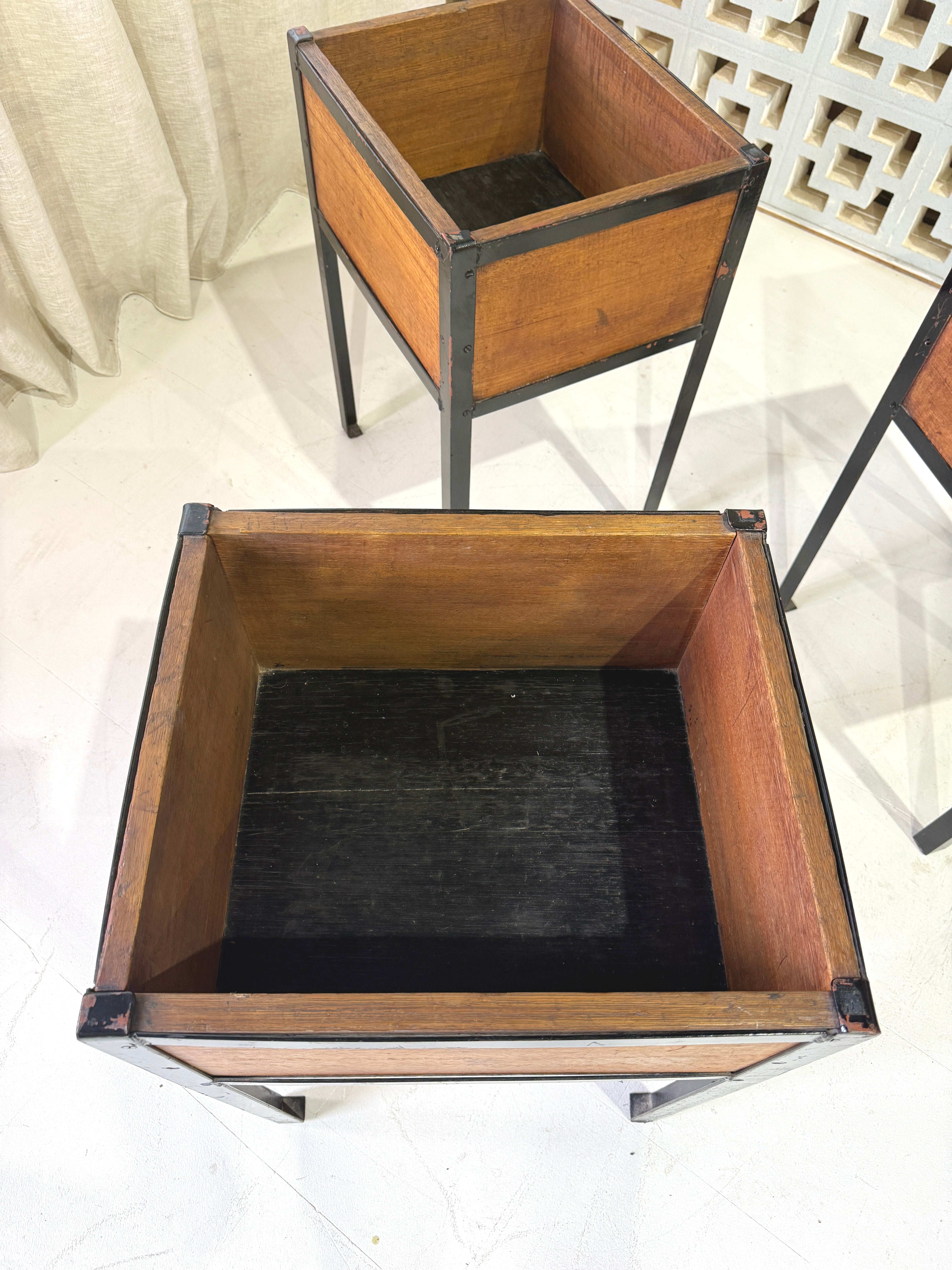 Vintage planter with a steel frame and timber sides.