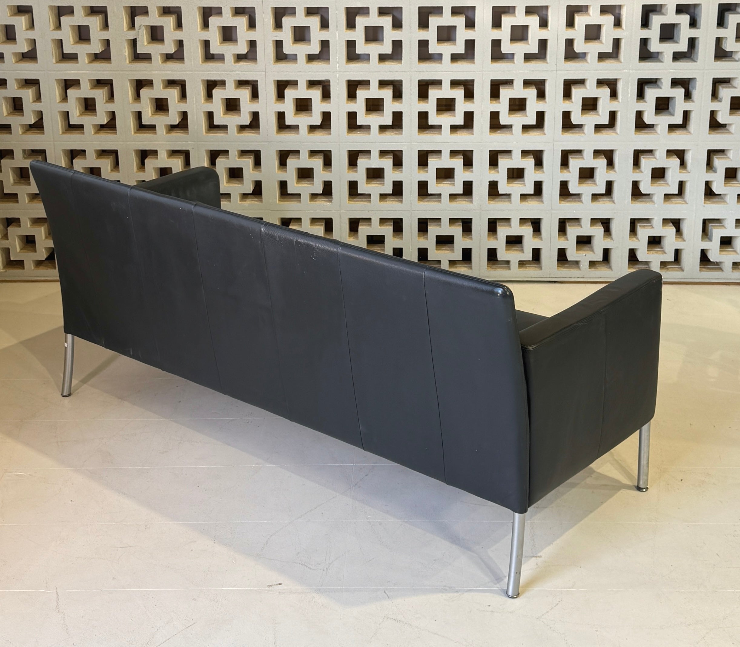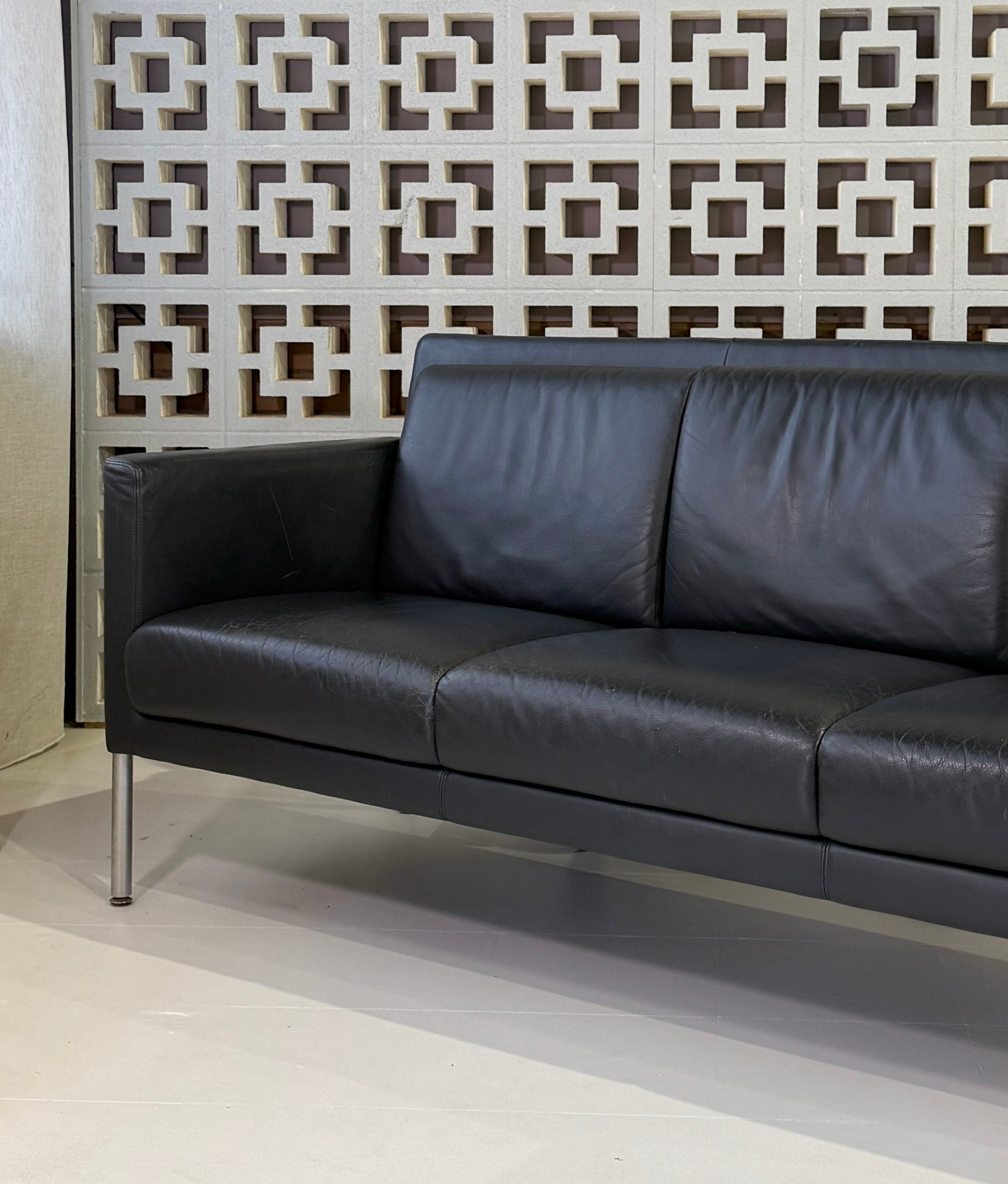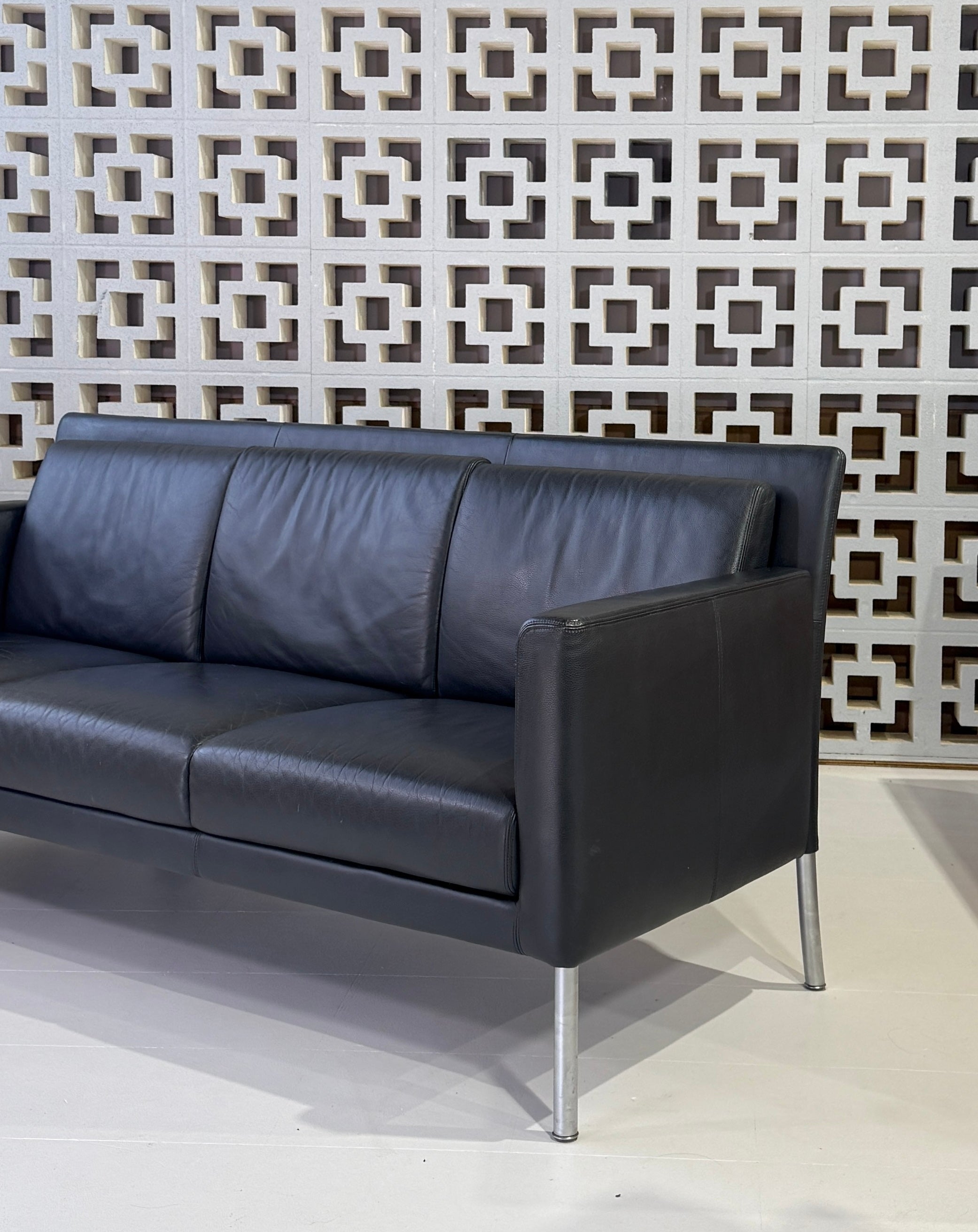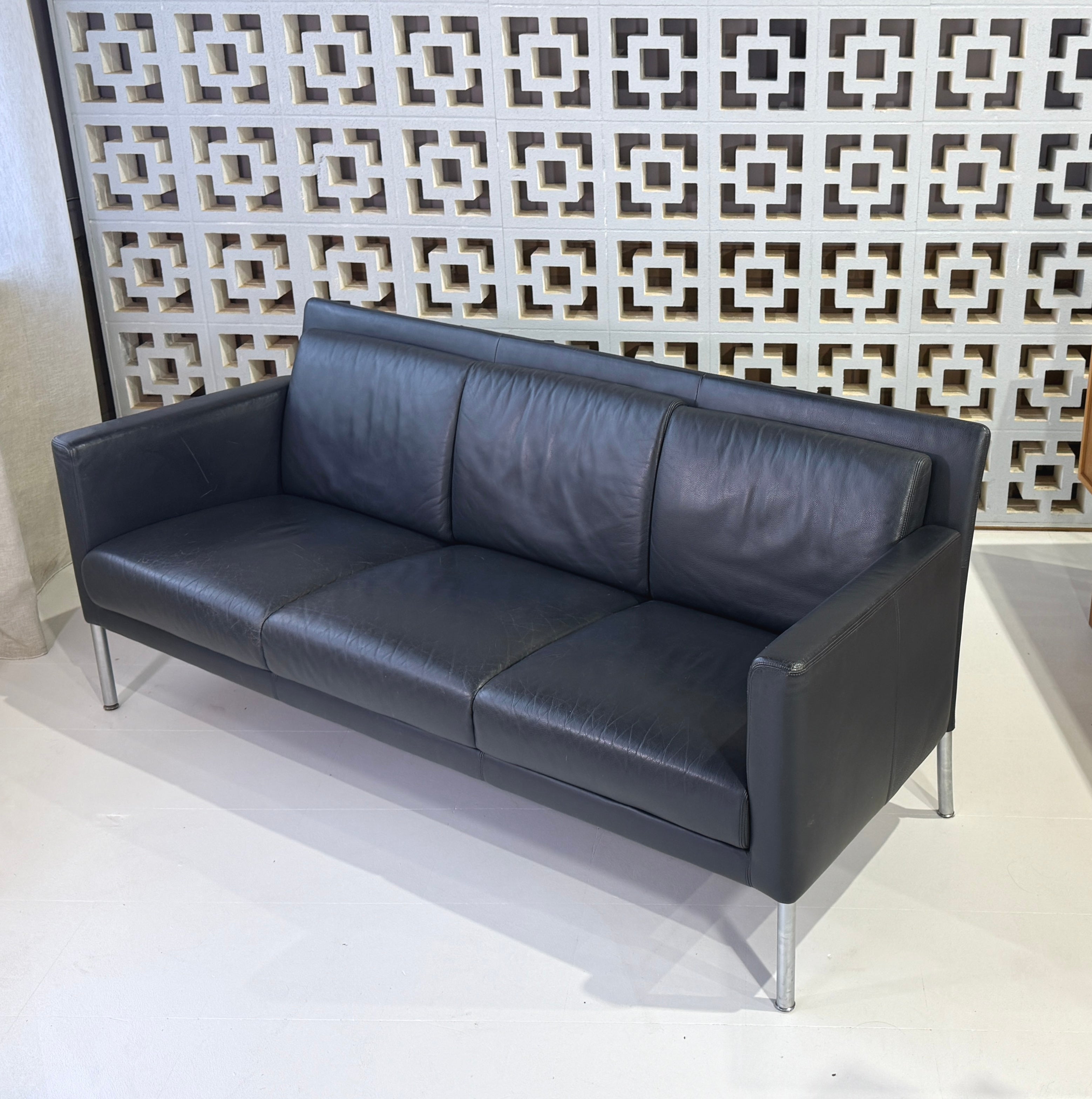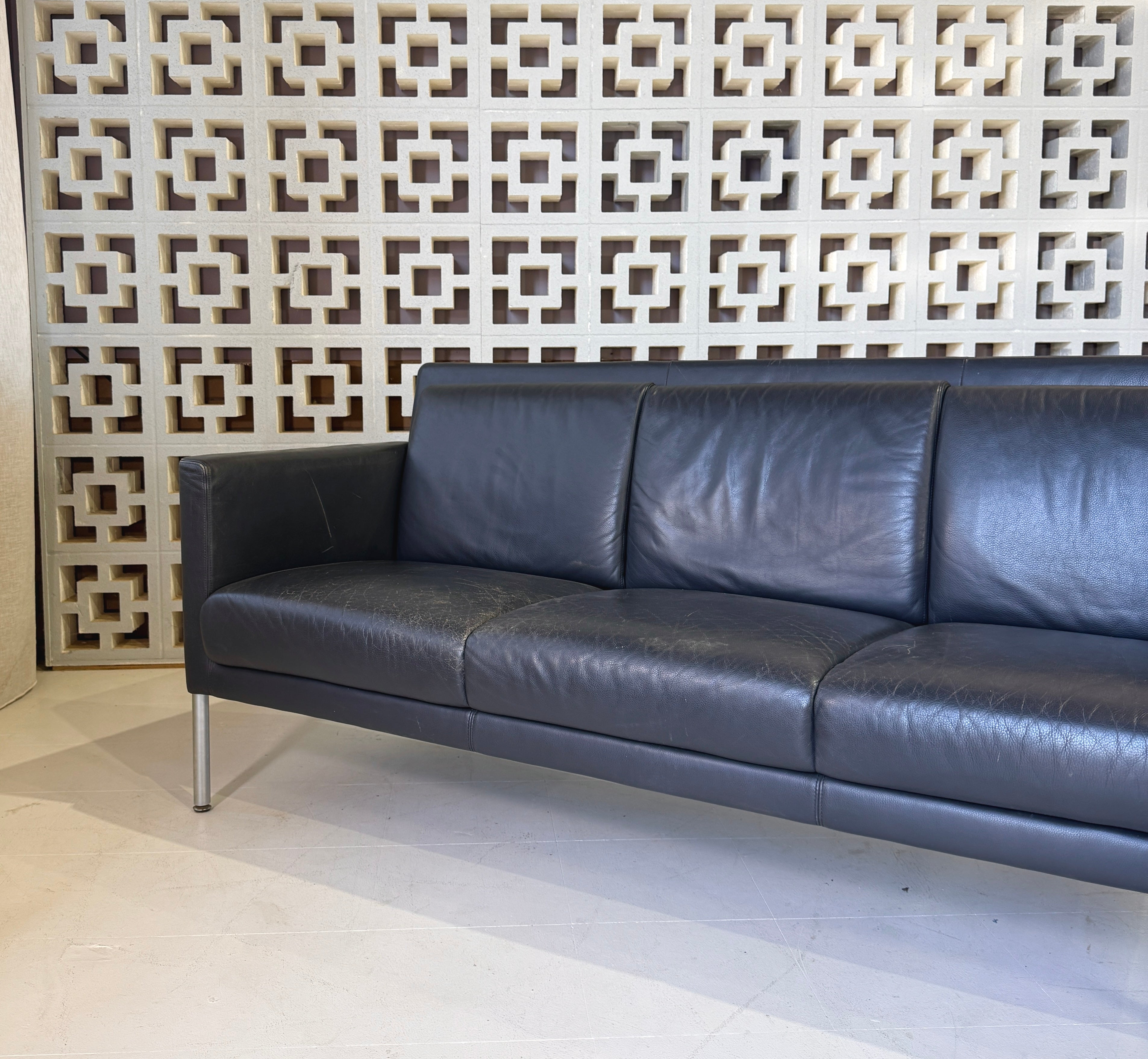 Walter Knoll three seater sofa in a wonderful grey-blue leather.