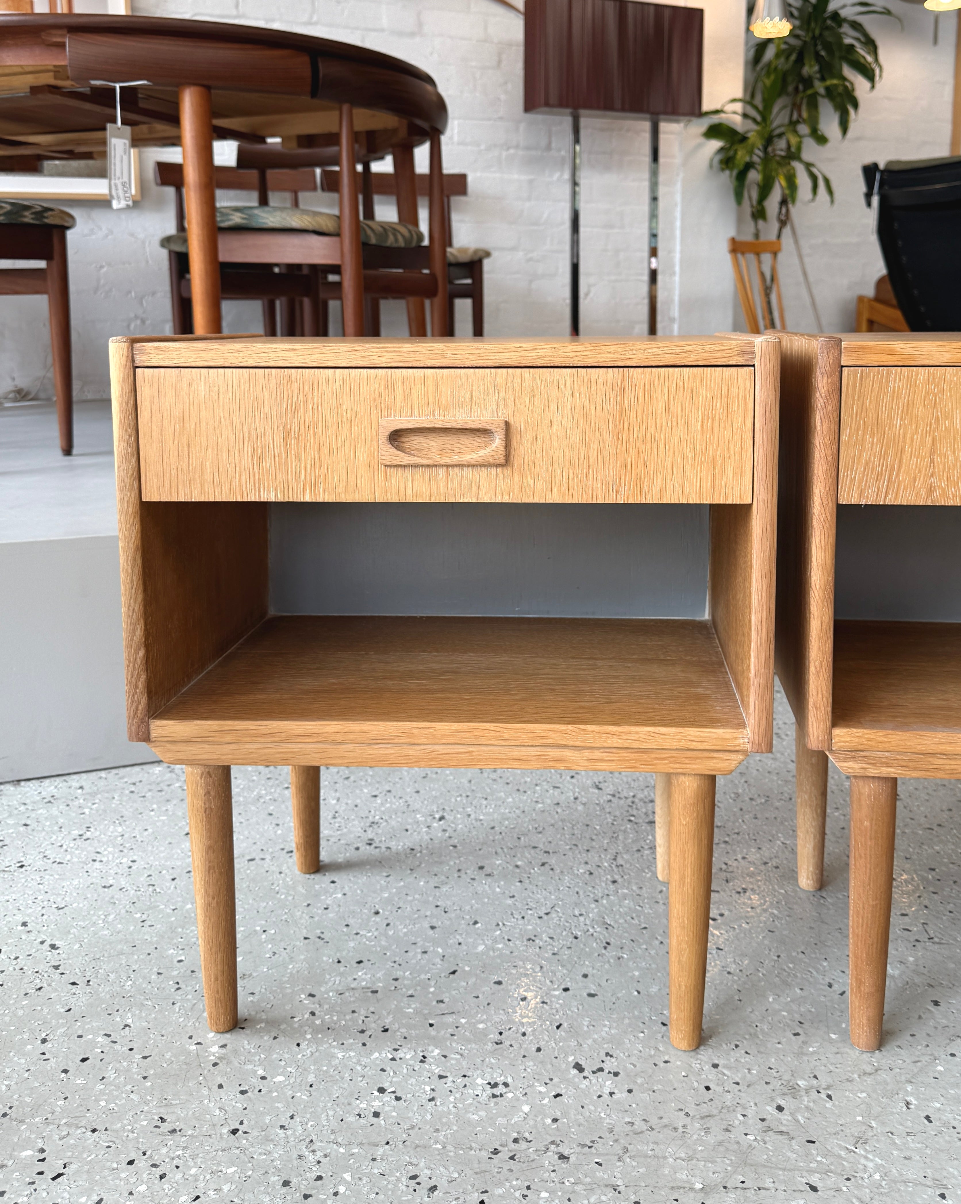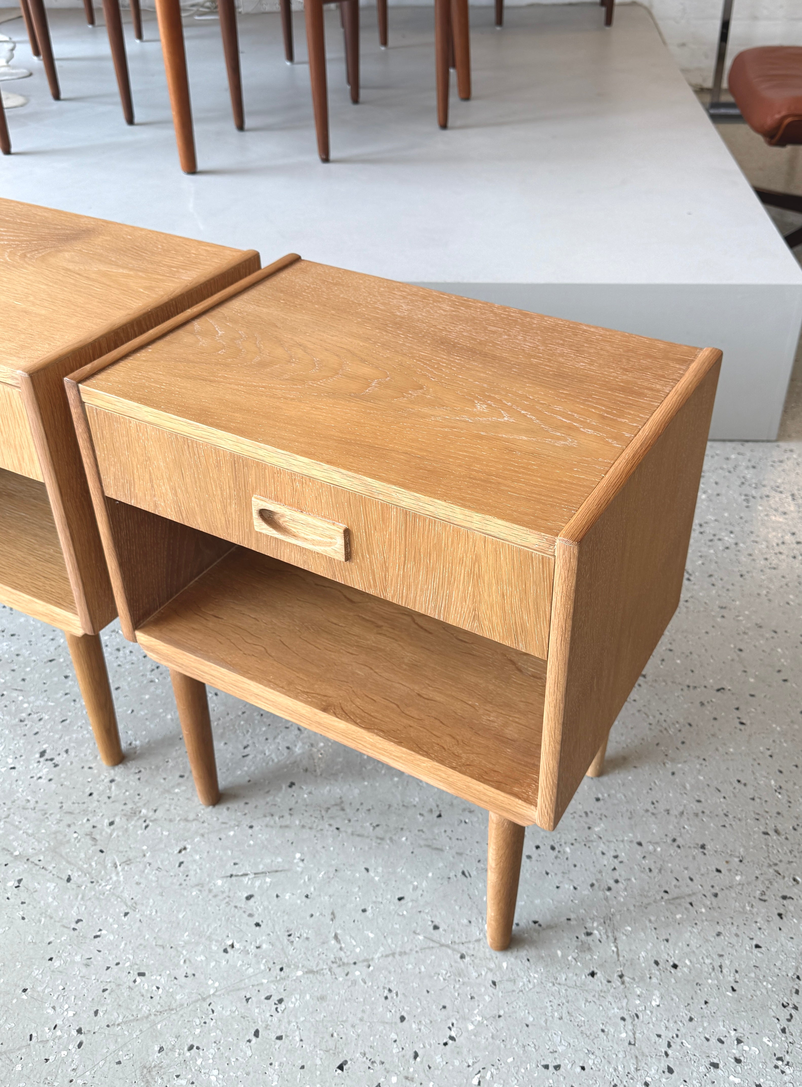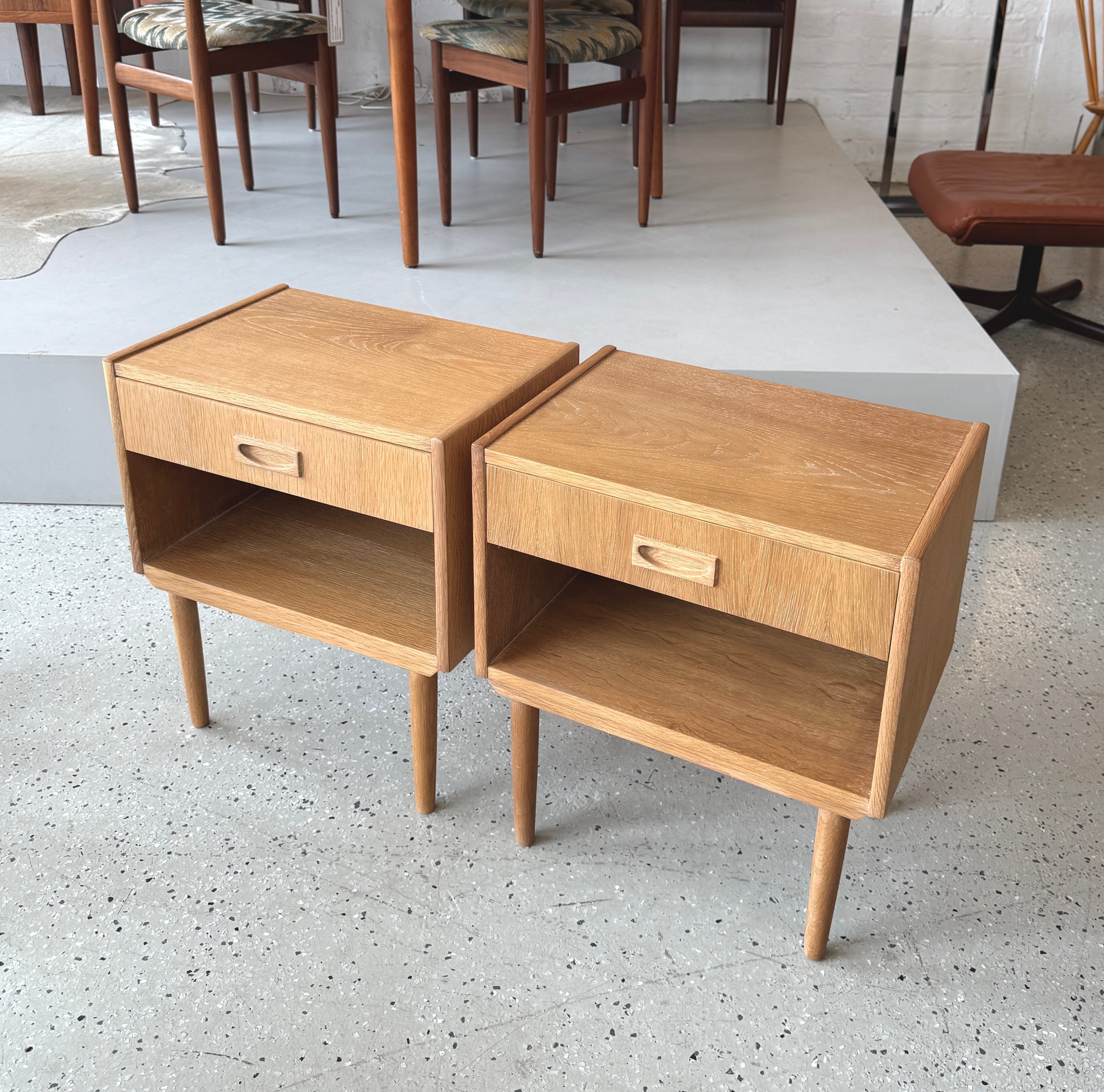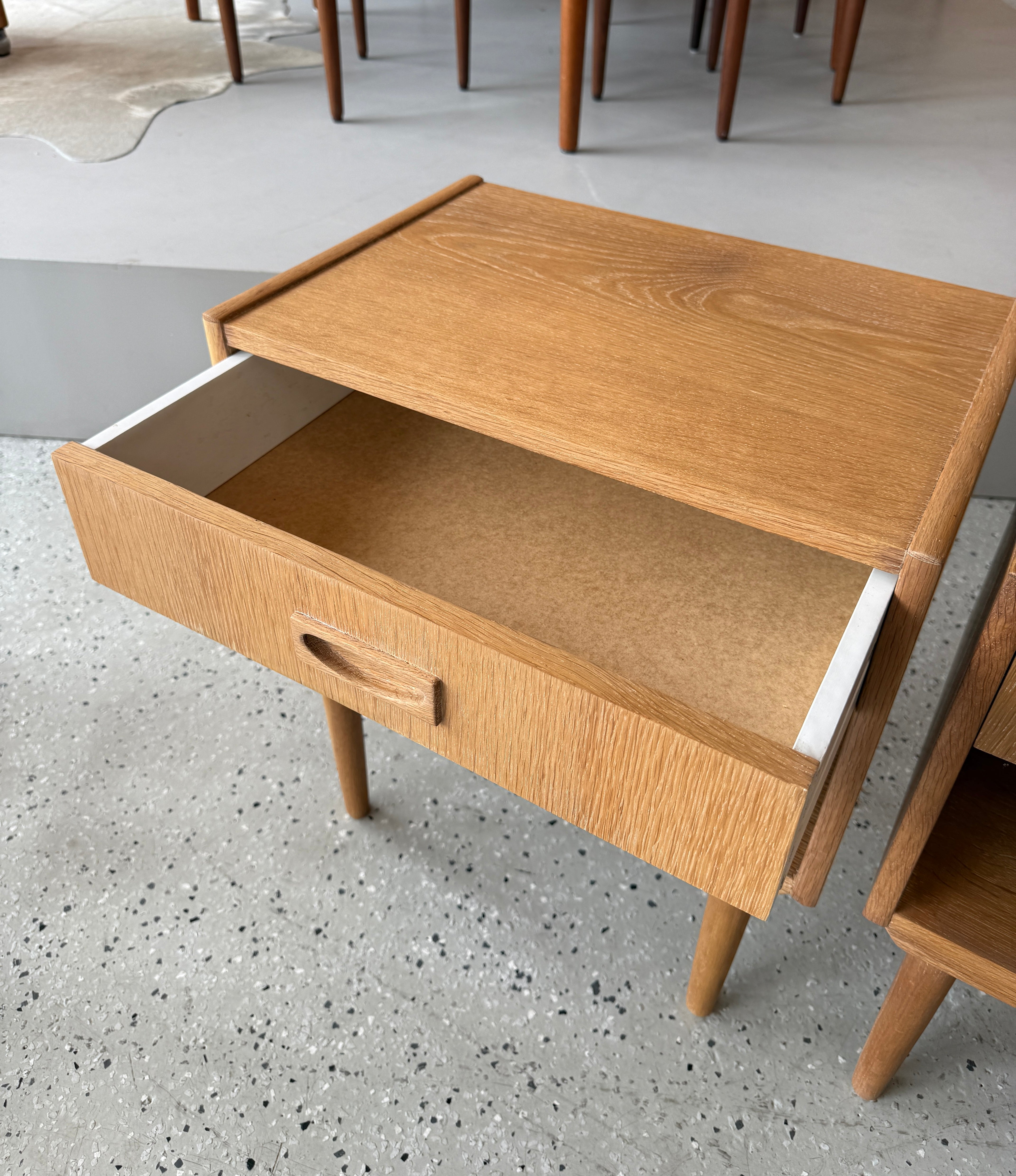 The well-sized matching pair feature a single pull-out drawer, and a lower hutch.