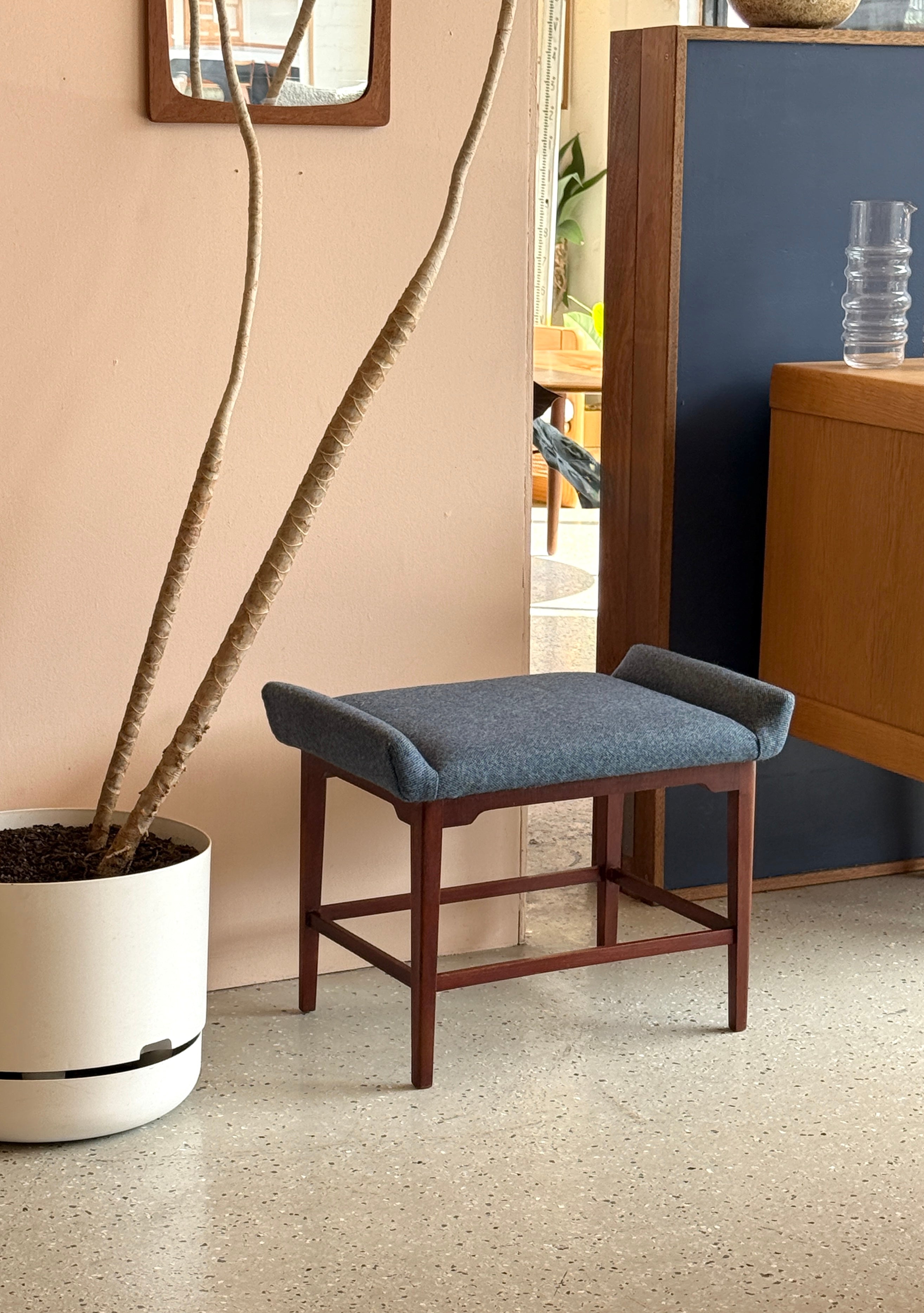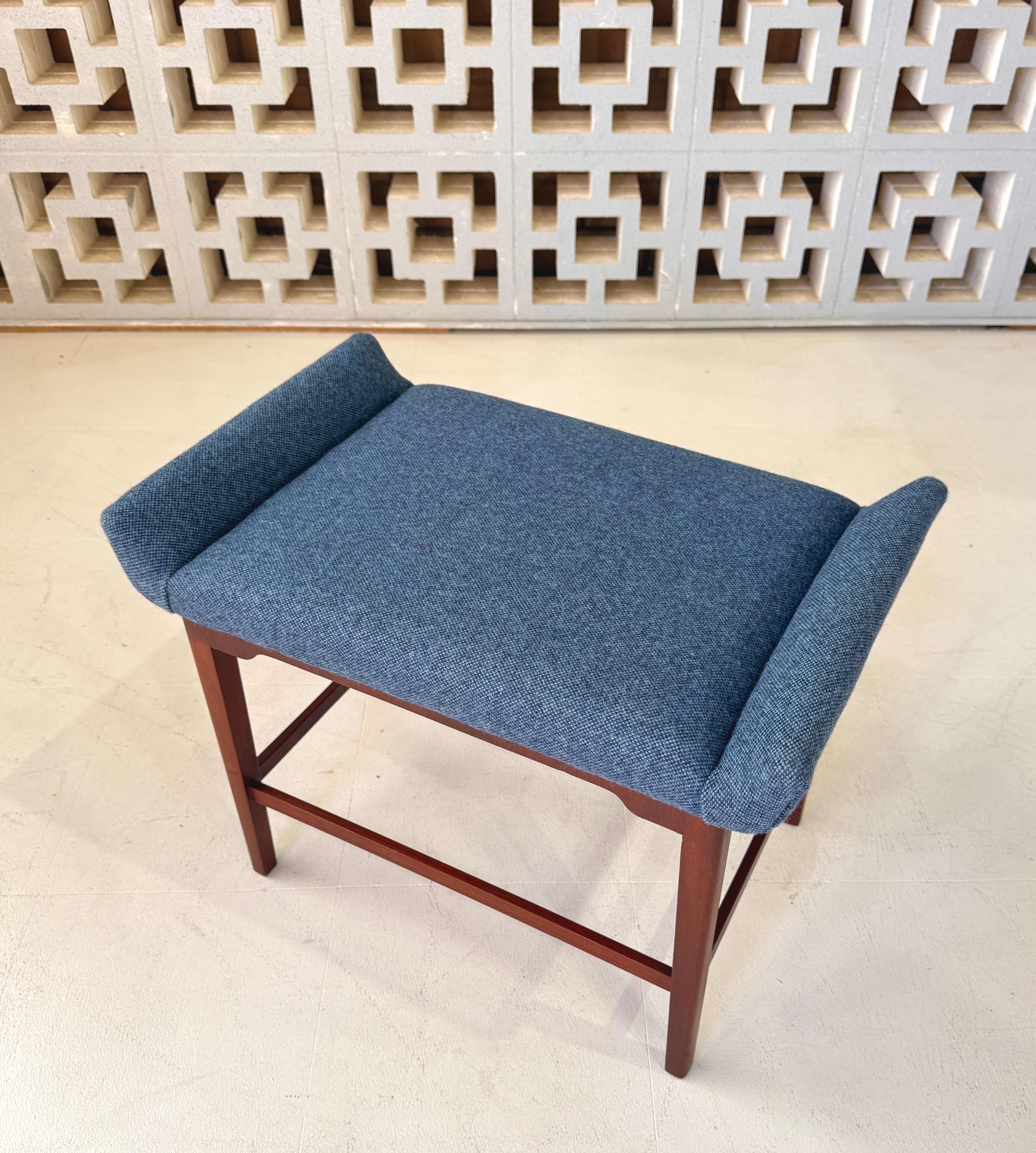 Wing-tipped footstool on a stretcher base and in a new Instyle wool.
