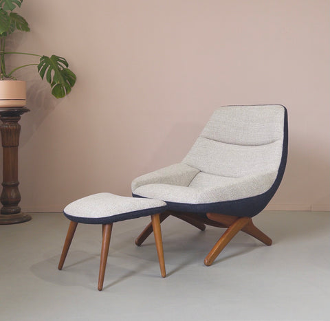 Sleek, incredibly comfortable chair in need of new upholstery. Talk to us about fabric options and cost. We have two of these chairs available.