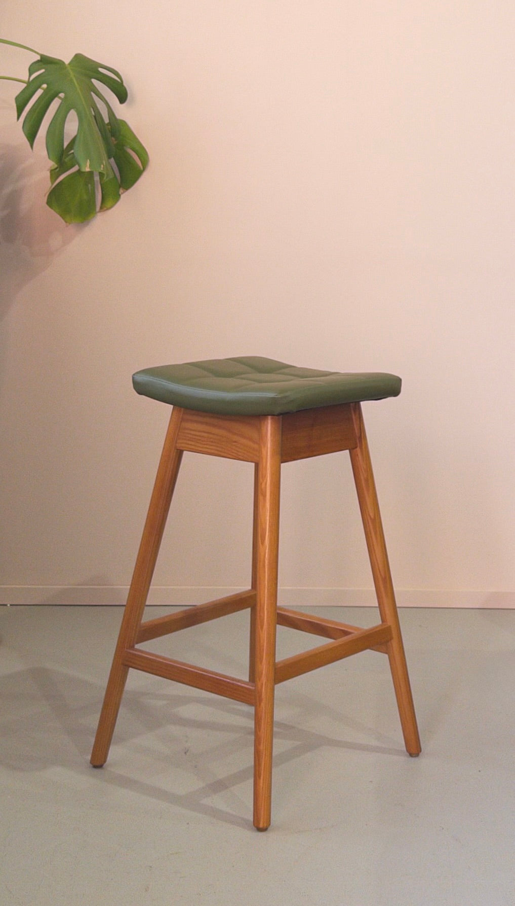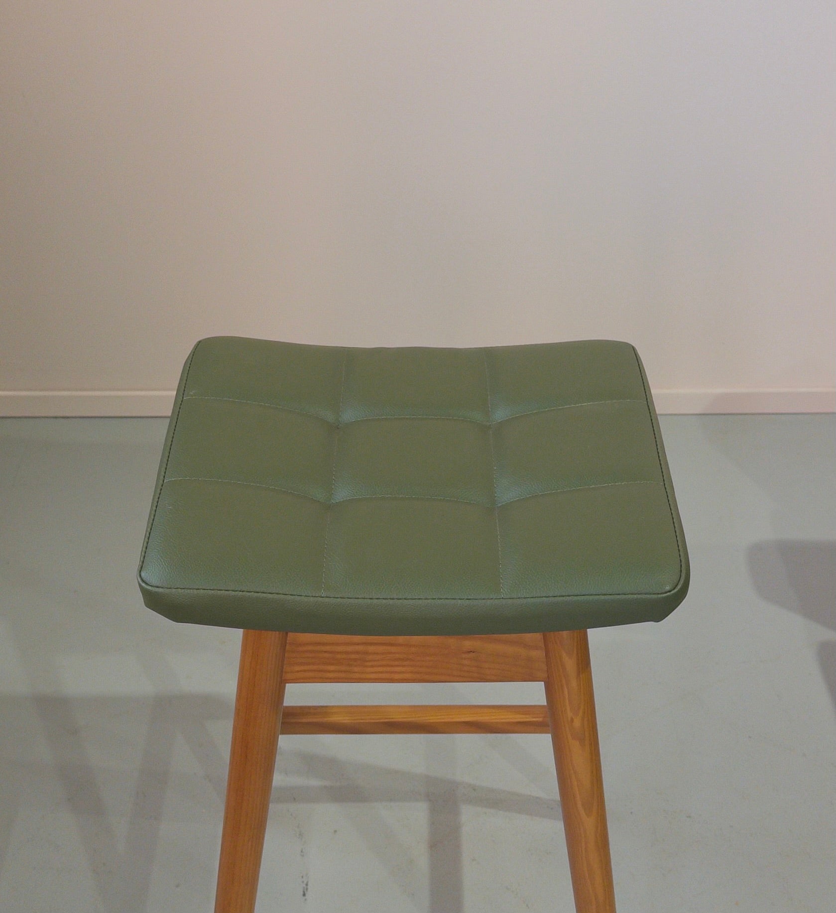 We’re providing TH Brown Martelle Stools in our exclusive colourways and materials. This one is in green vinyl. Talk to us about how many you need - they're made to order.